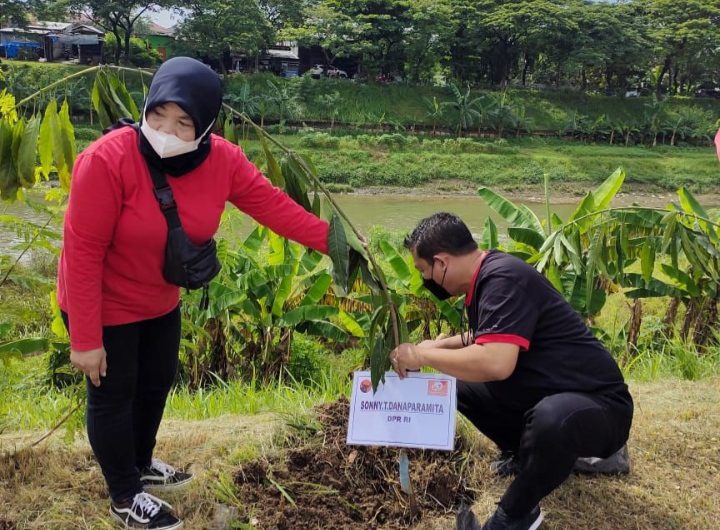 Sonny T. Danaparamita anggota Komisi IV DPR RI dari Fraksi PDI Perjuangan, melakukan penanaman pohon (Jongkok baju hitam)