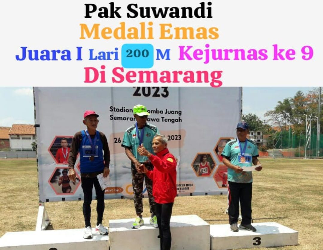 Kejunas ke 9 PAMI yang dihelat di Stadion Tri Lomba Juang Semarang-Jawa Tengah pada 26 – 27 Agustus 2023 itu mencatat jejak terbaik angggota Atlit Master Indonesia dari Kota Malang yang berprestasi. Salah satunya adalah Suwandi peraih medali emas sebagai juara 1 dalam lomba lari 200 meter, juga atlit master perempuan lainnya yang meraih medali perak dilomba lari yang sama.