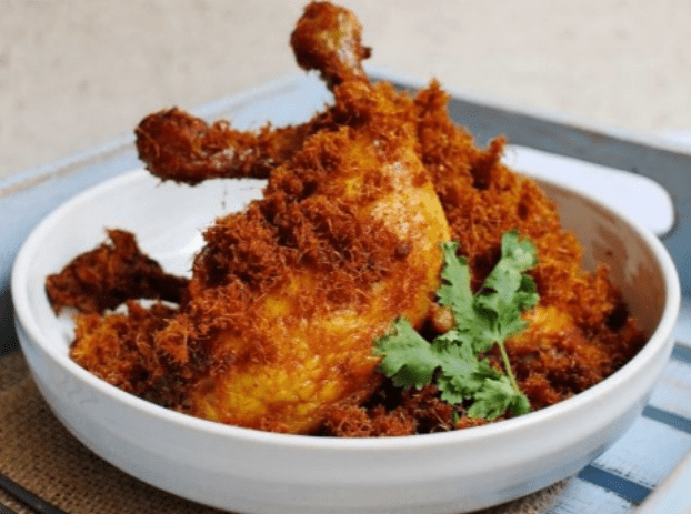 🍗 Sajikan ayam dengan taburan lengkuas goreng.