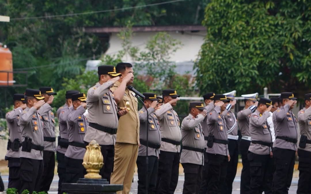 Kapolres Dharmasraya, AKBP Bagus Ikhwan, bertindak sebagai pemimpin apel dan membacakan amanat Kapolri, Jenderal Listyo Sigit Prabowo.