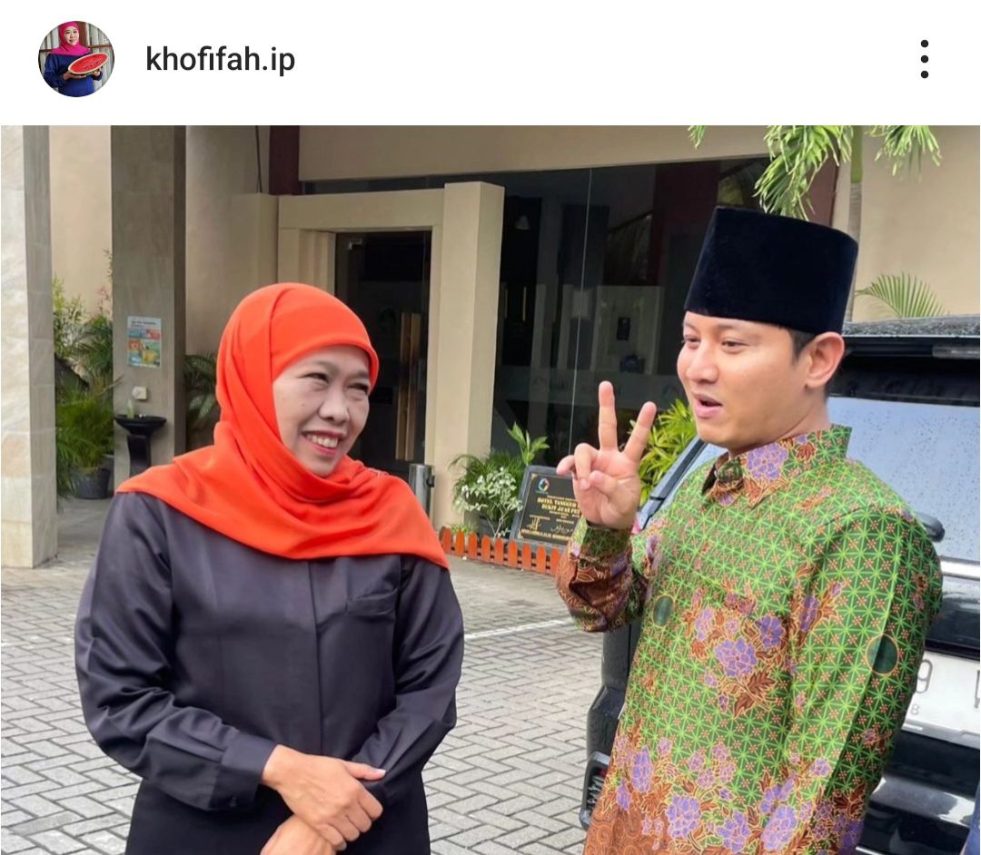 Bahkan di Instagram pribadi Khofifah @khofifah.ip, ia tampak berpose 2 jari, yang dianggap netizen sebagai tanda mendukung paslon Pilgub Jatim nomor urut 2, Khofifah-Emil.