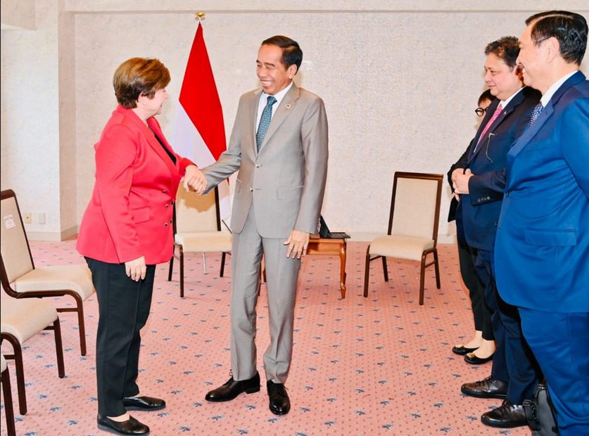 Monwnews.com, Presiden RI Joko Widodo (Jokowi) menggelar pertemuan dengan Direktur Pelaksana Dana Moneter Internasional (IMF), Kristalina Georgieva, di Hotel Rihga Royal, Hiroshima, Jepang, pada Sabtu (20/05/2023). Dalam pertemuan tersebut, Direktur Pelaksana IMF menilai kondisi ekonomi Indonesia cukup baik dan stabil di tengah situasi perekonomian dunia yang sedang dihadapkan dengan banyak ketidakpastian.