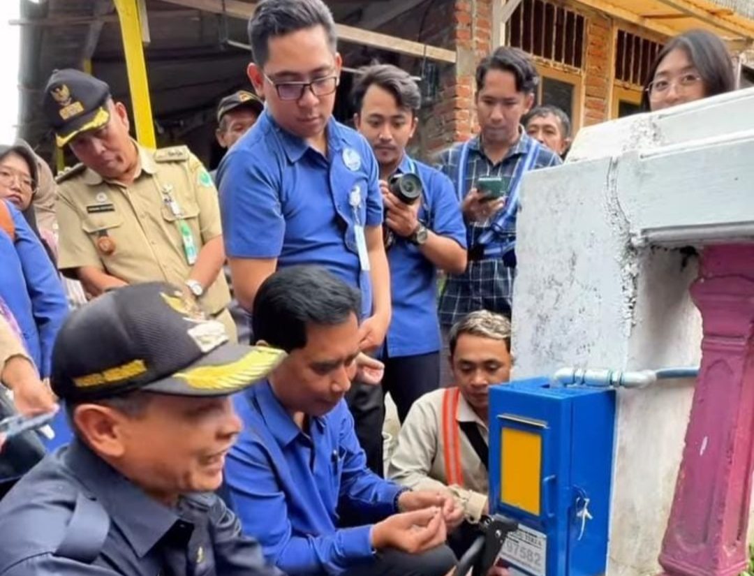 Dan secara simbolis Pj Wali Kota Malang, Wahyu Hidayat, mendatangi ke tiga titik dari 110 sambungan gratis yang diberikan.