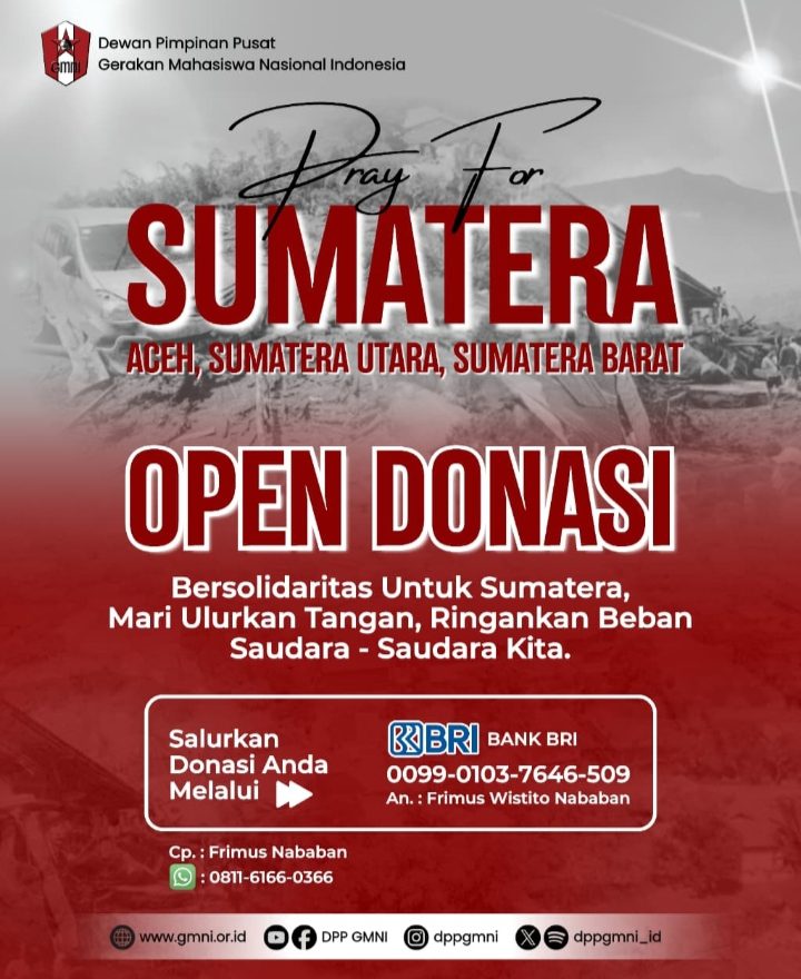 Monwnews.com, Jakarta – Dewan Pimpinan Pusat (DPP) Gerakan Mahasiswa Nasional Indonesia (GMNI) peduli kemanusiaan dan ajak peduli antar sesama menyikapi musibah banjir dan longsor yang melanda sejumlah wilayah di Aceh, Sumatera Barat dan Sumatera Utara.