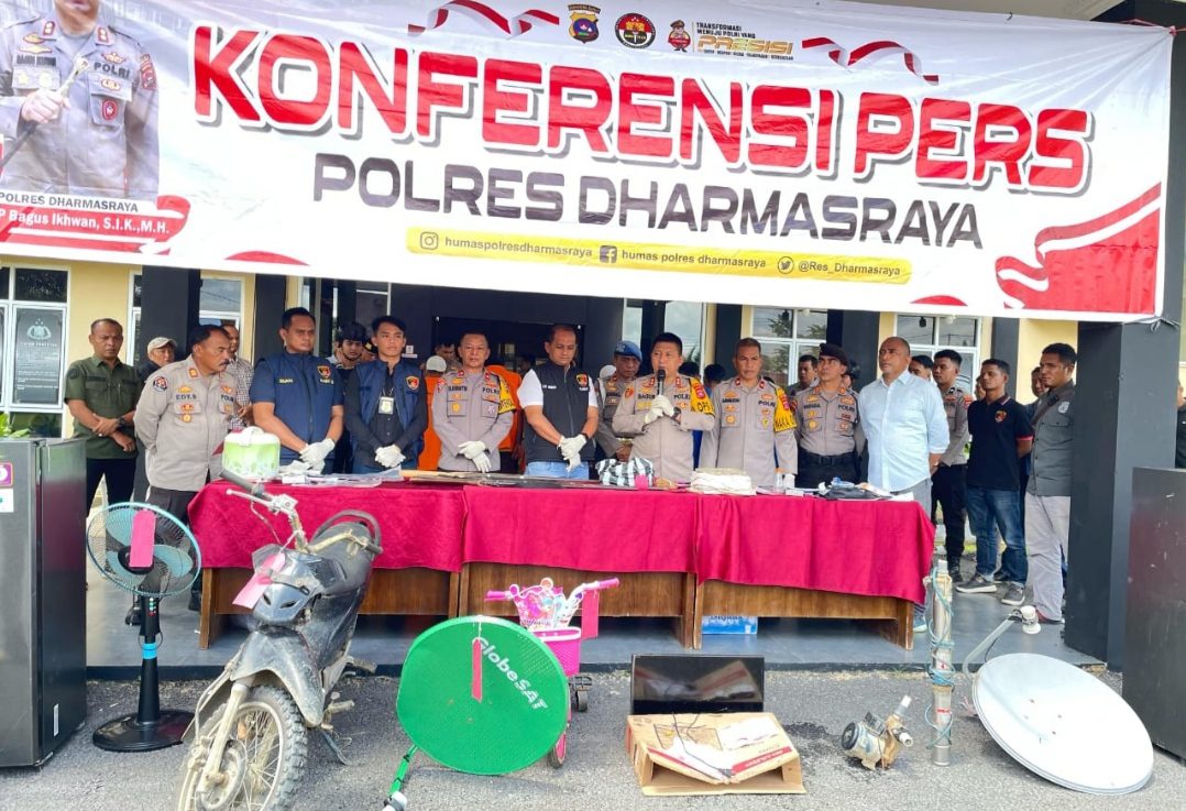 “Satuan Reserse kriminal Polres Dharmasraya berhasil mengungkap dua kasus curas di lokasi berbeda. Kasus pertama terjadi di Ruko Brilink Bonjovi, Jorong Sungai Nili, Kenagarian Sungai Kambut, Kecamatan Pulau Punjung, pada Sabtu, 30 Maret 2024 sekitar pukul 22.30 WIB. Dan Kasus kedua terjadi di Toko Barokah, Jorong Sungai Betung, Nagari Koto Baru, Kecamatan Koto Baru, pada Kamis, 16 Januari 2025 sekitar pukul 20.10 WIB,” kata Kapolres.