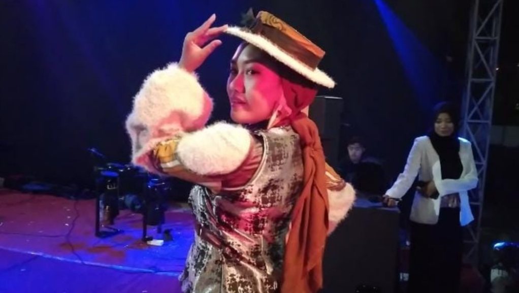 Ada ekspresi kegembiraan yang diungkapkan oleh salah satu peserta dalam ajang kompetisi model di event santri fest 2024.