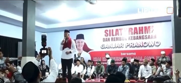 Usai melakukan pidato politiknya didepan jubelan massa di Lapangan Kedungkandang Kota Malang yang diwarnai hujan deras. Ganjar Pranowo lanjut kunjungan bersilaturohim ke Pondok Pesantren Babussalam, di Jl. Hasyim Ashari, Krajan, Banjarejo, Kecamatan Pagelaran, Kabupaten Malang, Selasa (30/01/2024).