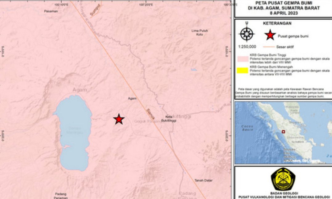 Gempa M 4,5 Goyang Bukit Tinggi Sumatera Barat