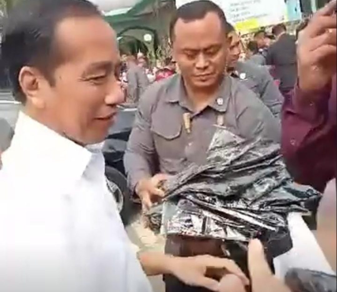 Kedatangan Jokowi blusukan ke pasar Bululawang, selain memastikan sejumlah harga kebutuhan pokok, Presiden juga membagikan sejumlah paket bantuan dan hadiah kepada warga masyarakat, pedagang pasar dan para tukang becak. (galih)