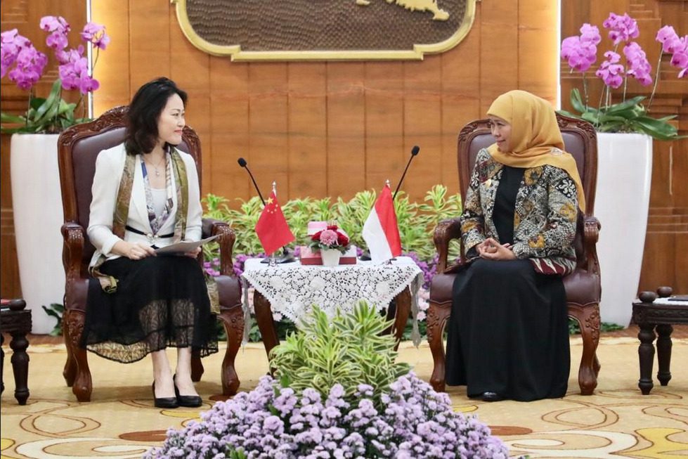 Monwnews.com, Surabaya – Gubernur Jawa Timur Khofifah Indar Parawansa menerima kunjungan Duta Besar (Dubes) Republik Rakyat Tiongkok untuk ASEAN, Hou Yanqi di Gedung Negara Grahadi Surabaya, Kamis (13/4/2023).