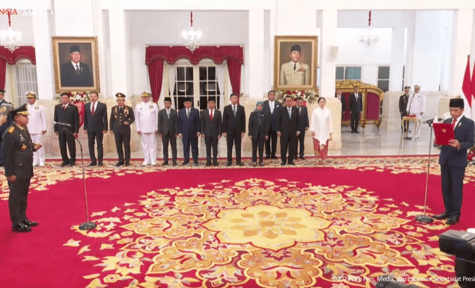 Monwnews.com, Presiden RI Joko Widodo (Jokowi) melantik Jenderal Agus Subiyanto sebagai Panglima TNI, Rabu (22/11/2023) pagi, di Istana Negara, Jakarta. Pelantikan Agus Subiyanto dilakukan berdasarkan Keputusan Presiden (Keppres) Nomor 102/TNI Tahun 2023 tentang Pemberhentian dan Pengangkatan Panglima Tentara Nasional Indonesia yang ditetapkan di Jakarta tanggal 22 November 2023.
