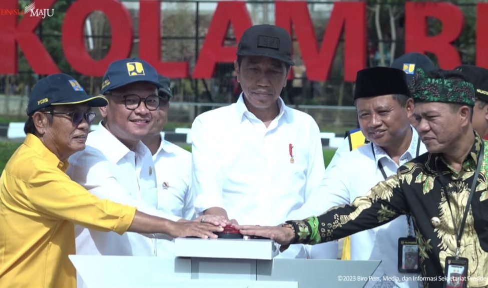 “Dengan mengucap bismillahirrahmanirrahim, pada sore hari ini saya resmikan Kolam Retensi Andir, Kolam Retensi Cieunteung, dan Floodway Cisangkuy di Kabupaten Bandung, dan Flyover Kopo di Kota Bandung, Provinsi Jawa Barat,” ucap Presiden saat melakukan peresmian, di Kawasan Kolam Retensi Andir, Minggu (05/03/2023) sore.