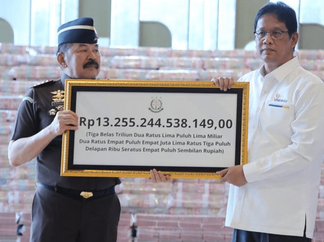 Monwnews.com, Dalam Acara yang dihadiri oleh Presiden Prabowo, Kejaksaan Agung ( Kejagung ) menyerahkan uang pengganti senilai Rp13 triliun hasil penindakan perkara korupsi pemberian fasilitas ekspor crude palm oil (CPO) dari terdakwa korporasi.