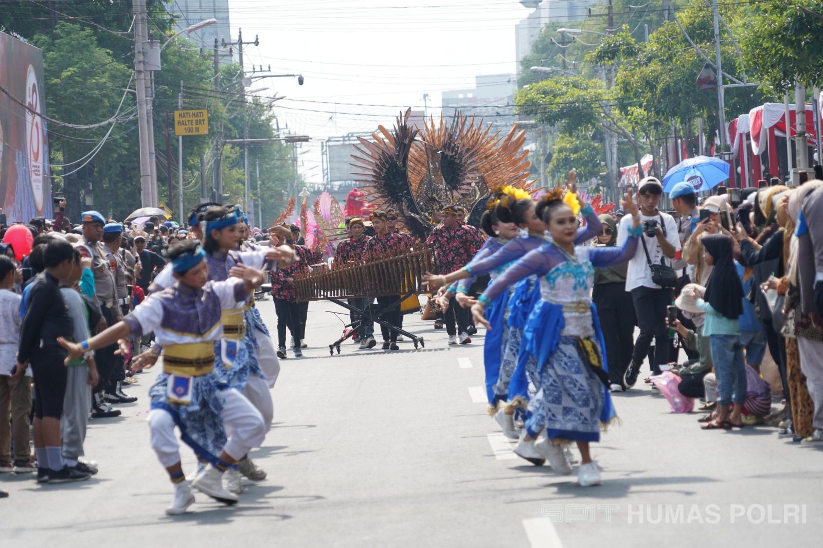 Kota Semarang – Perayaan HUT Bhayangkara ke-78 yang digelar Polda Jateng di depan Balai Kota Semarang, berlangsung meriah dan penuh warna berkat Karnaval Budaya yang menghadirkan ribuan masyarakat turun ke jalan, Senin (1/7/2024).