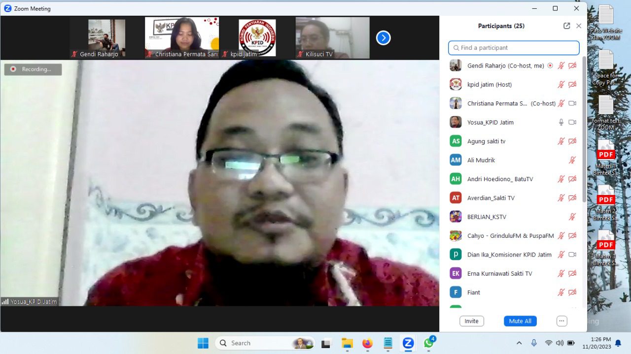 Surabaya- Komisi Penyiaran Indonesia Daerah (KPID) Jawa Timur (Jatim) menggelar Bimbingan Teknis Penyiaran PKPI Nomor 4 Tahun 2023 tentang Pengawasan Pemberitaan, Penyiaran, dan Iklan Kampanye Pemilihan Umum pada Lembaga Penyiaran. Bimtek tersebut digelar selama tiga hari 20-22 November 2023. Tujuan dari bimtek ini adalah untuk mencegah siaran partisan di lembaga penyiaran Jawa Timur selama masa kampanye hingga pemungutan suara.