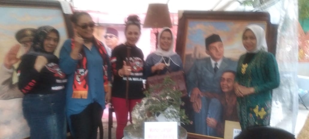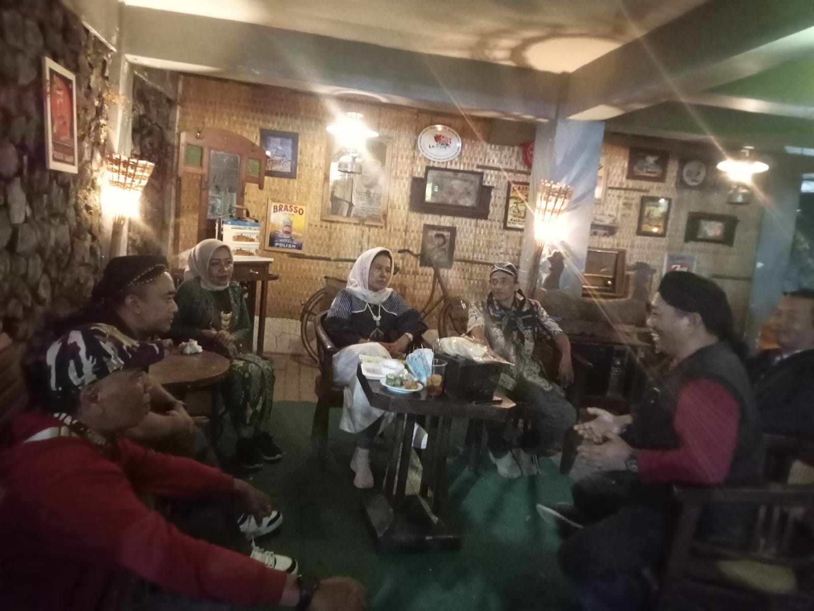 Sri untari terlihat berbincang dengan para pewarta Forum Malang Jurnalis (MaJu) pada gelaran Event Malang Djadoel 2