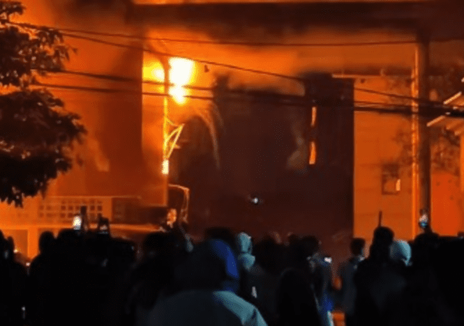 Masyarakat yang protes membakar bagian gedung MaPolda DIY, dimana dalam unggahan Instagram Merapi_Undercover pada Sabtu (30/8/2025) pukul 01.00 dinihari, terlihat api membakar sebagian gedung Markas Polda DIY
