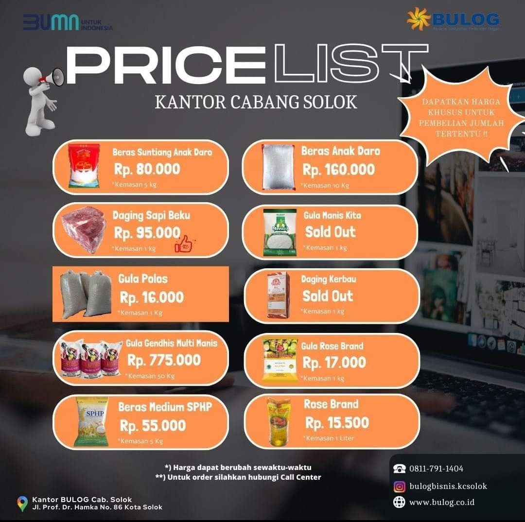 List harga Operasi Pasar Bulog dalam acara HUT Kabupaten Dharmasraya.