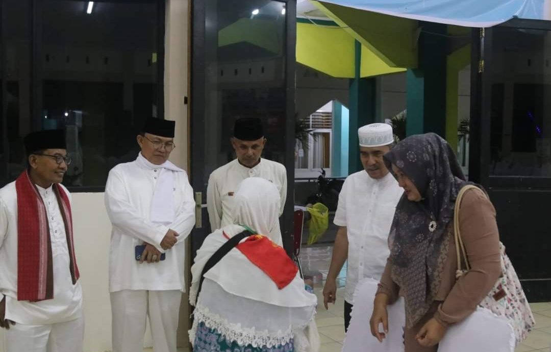 Setibanya di Padang, Adlisman, berkenan menyambut sekaligus meninjau para Jemaah Calon Haji Kabupaten Dharmasraya di Asrama Haji Embarkasi Padang.