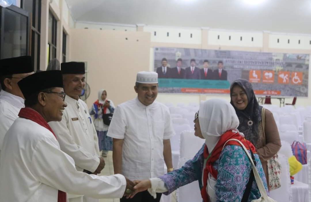 Sutan Riska Tuanku Kerajaan Bupati bersama Adlisman Sekda Dharmasraya saat bersama Calon Jemaah Haji sebelum berangkat ke Tanah Suci.