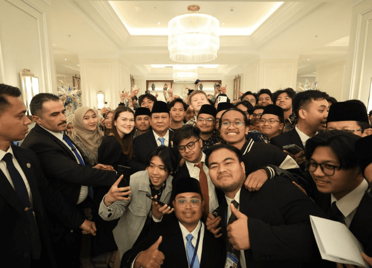 Salah satu mahasiswa, Agustine, mengaku sangat senang bisa bertemu langsung dengan Presiden Prabowo. Ia bahkan berkesempatan untuk berfoto bersama.