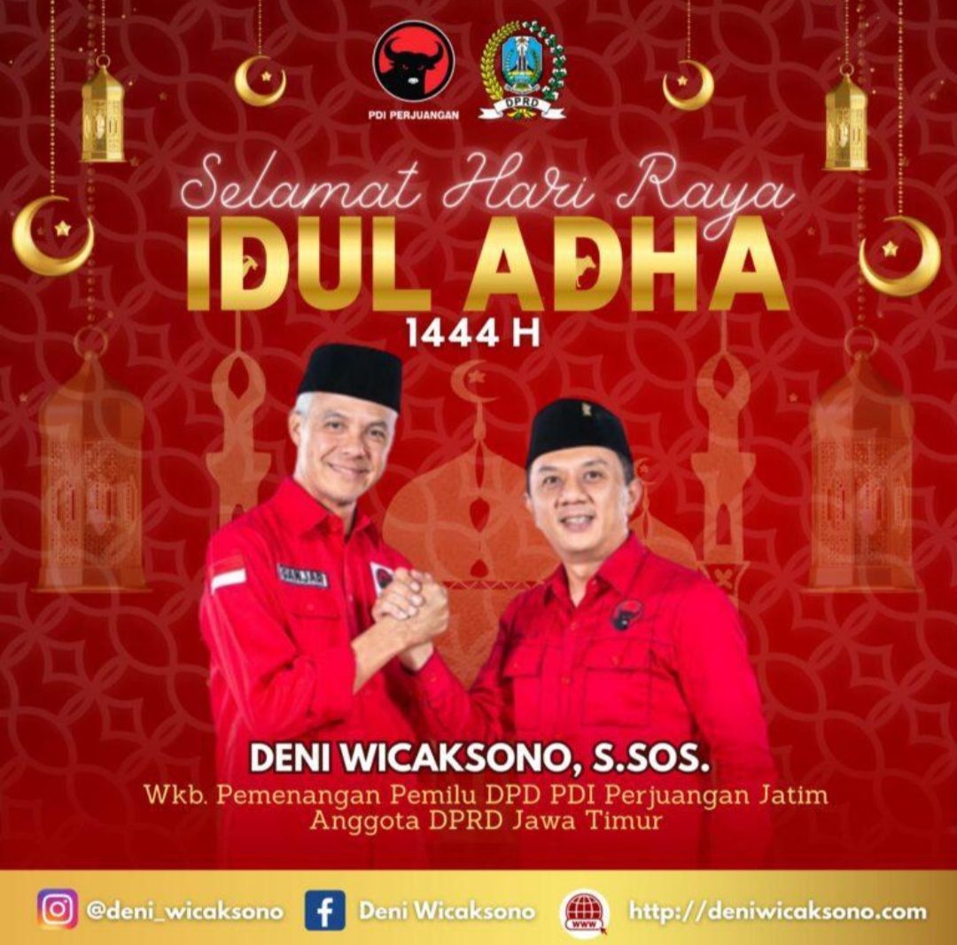 “Kami mengucapkan selamat Idul Adha untuk muslimin dan muslimat, khususnya yang ada tinggal di Pacitan. Semoga kita bisa menyerap hikmah dari perayaan Idul Adha ini,” ujar Plh. Ketua DPC PDIP Pacitan Deni Wicaksono, Rabu (27/6/2023).