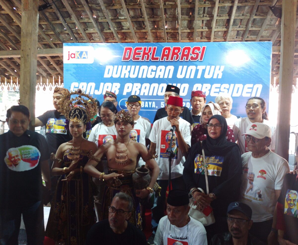 MonwNews.com, Surabaya – Alumni Universitas Airlangga (Unair) yang tergabung dalam Jaringan Arek Ksatria Airlangga (JAKA) deklarasikan mendukung bakal calon presiden (capres) Ganjar Pranowo di Joglo Merah Putih, Gununganyar, Kota Surabaya, Jumat (5/5) siang. Deklarasi tersebut juga diikuti puluhan kelompok relawan Ganjar Pranowo.