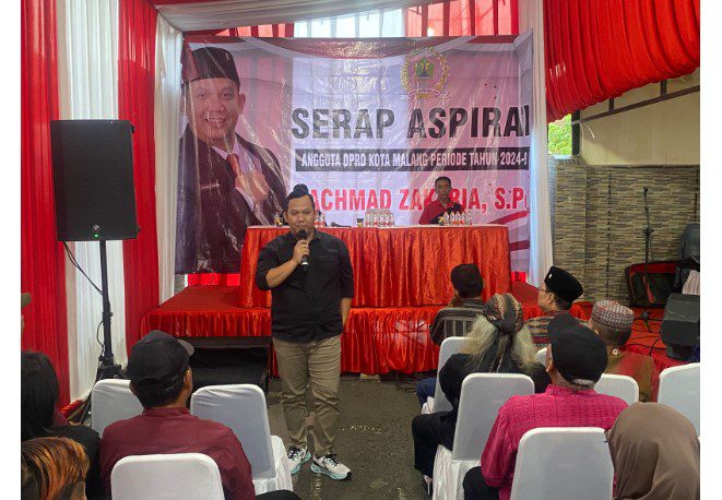 Kegiatan Serap Aspirasi tersebut digelar dalam masa reses anggota dewan periode 2024-2029 yang dihadiri oleh warga sesuai undangan, turut hadir juga ketua PAC PDIP Kecamatan Sukun,Didik Iswahyudi serta anggota Bamusi (Baitul Muslimin Indonesia) DPC PDIP Kota Malang yang akrab disapa Nurul Inaker.