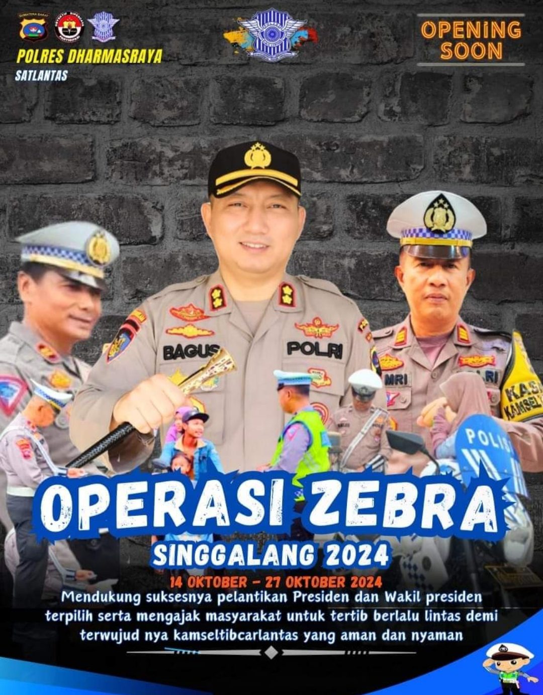 Operasi Zebra dilaksanakan serentak pada hari ini, sampai 27 Oktober 2024 mendatang serta diikuti oleh Polri, TNI, Satpol PP dan Dinas Perhubungan Kabupaten Dharmasraya.