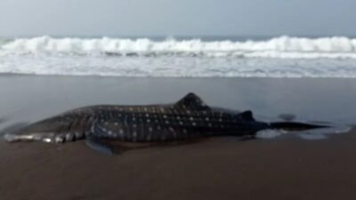 Monwnews.com, Jember – Seekor ikan hiu paus (Rhincodon typus) tutul berukuran sekitar tujuh meter dengan…